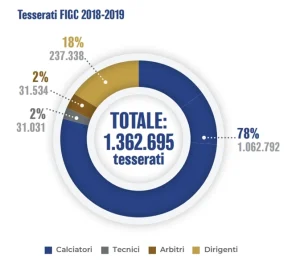 Complessivamente i tesserati della Federcalcio rappresentano in media circa un quarto di quelli totali del CONI (che è formato da 45 Federazioni sportive), pur vedendosi dimezzato il proprio contributo da parte dell’ente olimpico italiano.